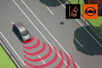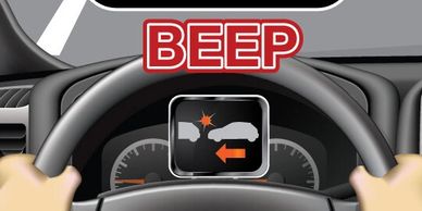 Detects the distance between the driver’s vehicle and the vehicle in front and notifies the driver by visual and/or audio signal if they are following too close.